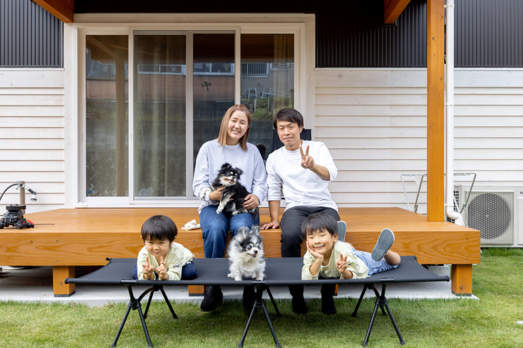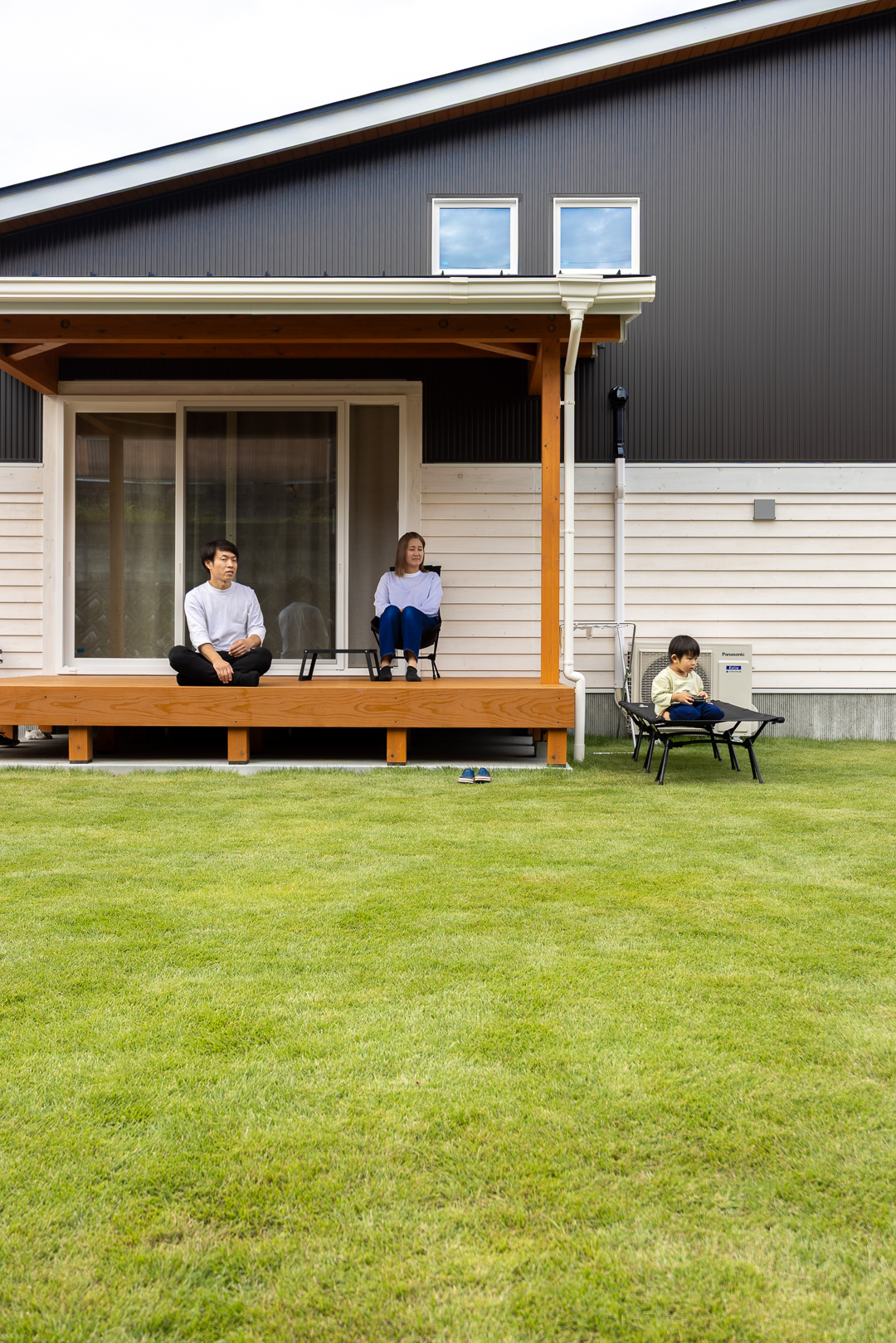 ウッドデッキは、家族みんなのお気に入り。天気の良い日は外に椅子を出してのんびりと。